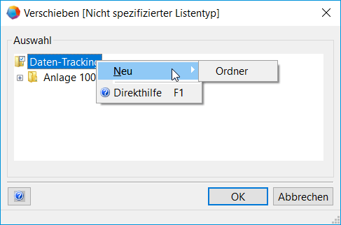 - Der Dialog Verschieben zeigt die vorhandene Struktur an, die sich unterhalb des Systemordners Daten-Tracking befindet.