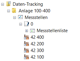 Im Beispiel ist dies das Arbeitsblatt Messtellenliste, das mit der Daten-Tracking-Kennung 0 unter Anlage 100-400 im Sammelordner Messtellen gespeichert ist.