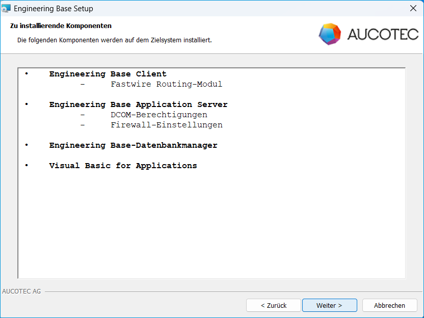 Diese müssen zwingend manuell in den Zugriffssteuerungs-Einstellungen Ihres Systems vergeben werden.- Klicken Sie Weiter und im nachfolgenden Dialog auf Installieren, um die Installation von Engineering Base zu starten.