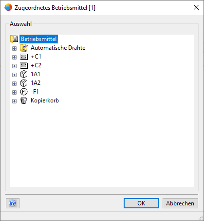 - Der Dialog Zugeordnetes Betriebsmittel wird geöffnet.