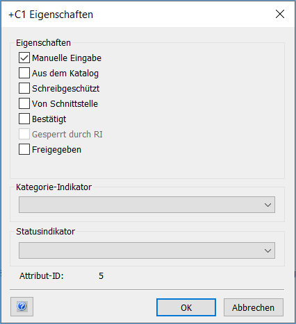 Schreibgeschützt | Das Setzen der Eigenschaft Schreibgeschützt verhindert das Editieren der zugehörigen Attributinformation. Attribute, bei welchen die Eigenschaft Schreibgeschützt gesetzt ist, werden grau hinterlegt. |