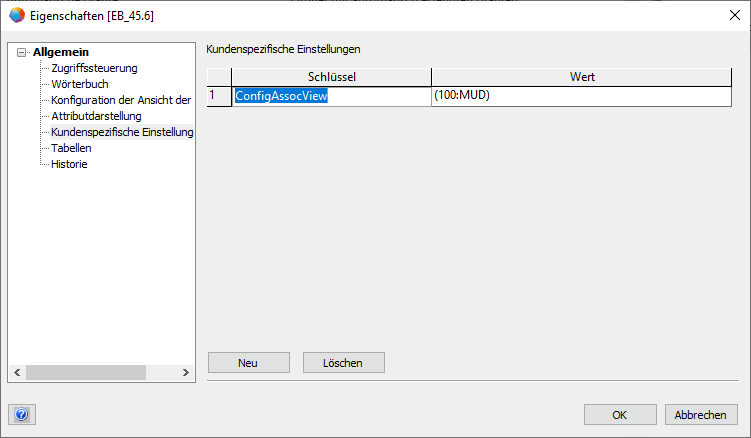 - Klicken Sie im Eigenschaften-Dialog auf den Knoten Kundenspezifische Einstellungen.