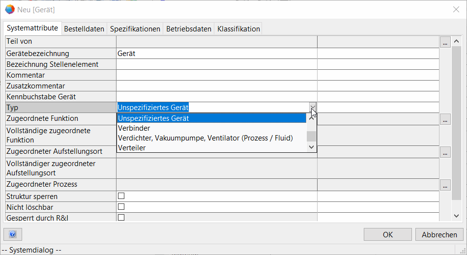 - Wählen Sie im Feld Typ aus der Auswahlliste einen Gerätetyp.