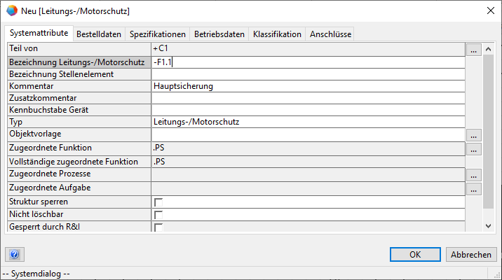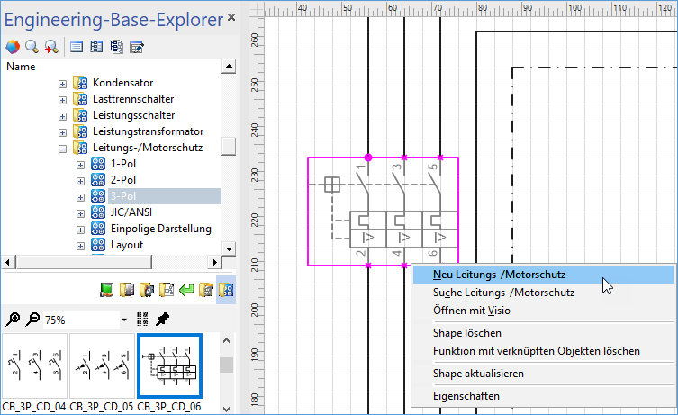 - Klicken Sie im Kontextmenü auf Neu <Gerätetyp> (z. B. Neu Leitungs-/Motorschutz).