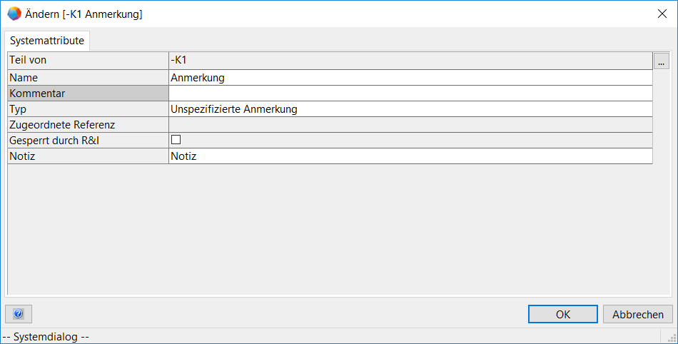 Der angezeigte Auswahldialog ist vom Objekt abhängig, an dem Sie die Anmerkung erzeugen wollen.