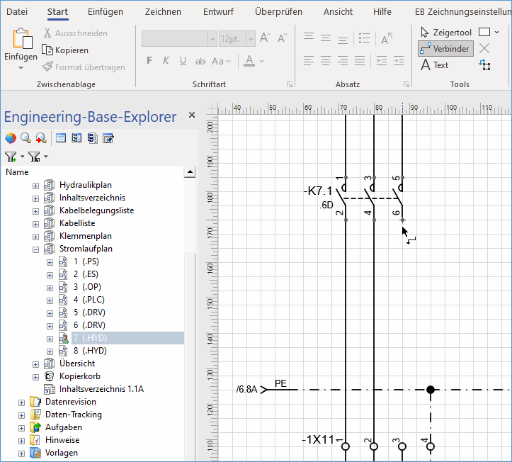 Werden Shapes auf bestehende Verbindungen platziert, erfolgt automatisch ein Aufsplitten dieser Verbindungen.