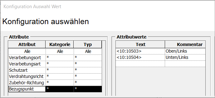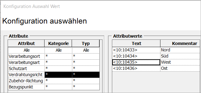 Definition der Werte für die Verdrahtungsrichtung (AID 10222) im Assistenten Auswahl Wert