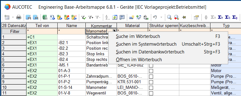 - Aktivieren Sie durch Klick auf F2 in der Filterzelle unterhalb der Spaltenüberschrift den Eingabemodus.