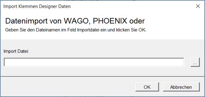 - Der Dialog Import Klemmen Designer Daten wird geöffnet.