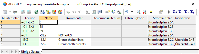 Das Arbeitsblatt Übrige Geräte enthält alle Geräte, die mit dem Potenzial/Stoff, aber nicht mit dem ausgewählten Teilnetz verbunden sind.