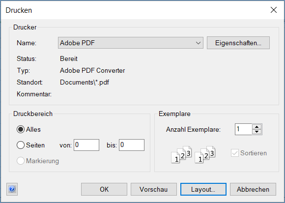 - Klicken Sie im Dialog Drucken auf Layout.