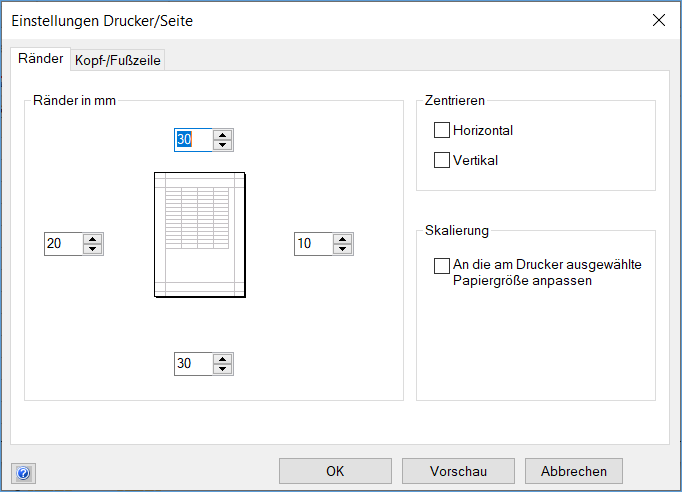 - Geben Sie unter Ränder in mm die Größe der Ränder vor.