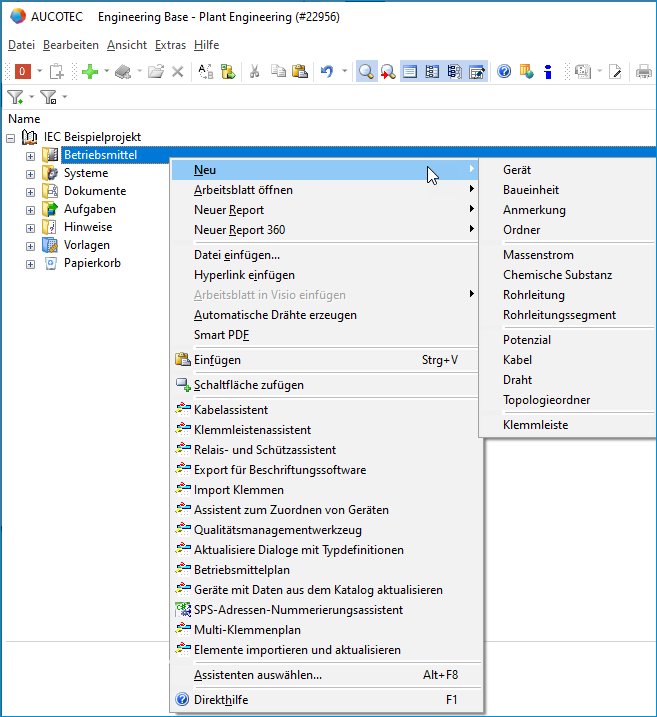 Mit dem Assistenten Menükonfiguration ist es möglich, das Kontextmenü für verschiedene Objekttypen individuell zu konfigurieren.