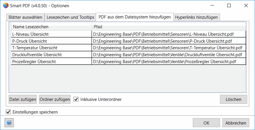 - Inklusive Unterordner: Markieren Sie vor der Auswahl des Ordners das Kontrollkästchen, wenn Sie auch PDF-Dateien aus zugehörigen Unterordnern berücksichtigen möchten.