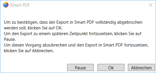 - OK: Der Abbruch des Konvertierungsauftrags wird bestätigt.