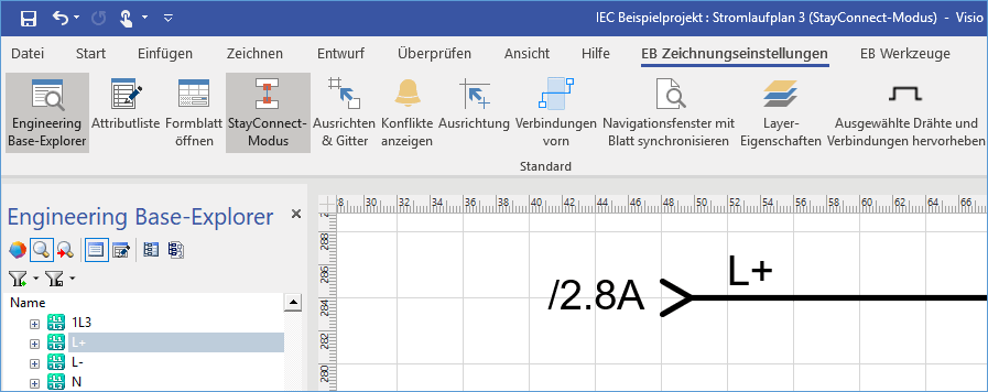- Klicken Sie in Visio auf dem Reiter EB Zeichnungseinstellungen auf StayConnect-Modus.
