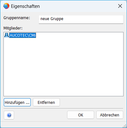 - Tragen Sie im Dialog Neue Gruppe im Feld Gruppenname den Namen der Gruppe ein.