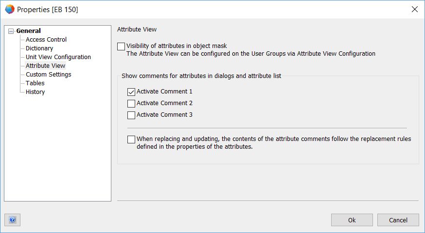 - Select the options Activate Comment 1 ... 3 under Show comments for attributes in dialogs and attribute list, depending on how many comment fields you want to display in dialogs and in the attributes list.