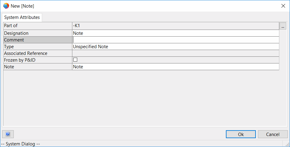 Defines the type of the note. The type is displayed in the object tree if neither a comment nor a name have been entered.