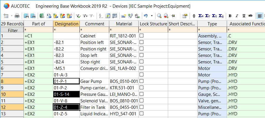 Following multiple selection of cells in a worksheet column, you can change the cell contents of all selected cells with a text entry. Following multiple selection, you can likewise jointly activate or deactivate the check boxes for all selected cells of a column.