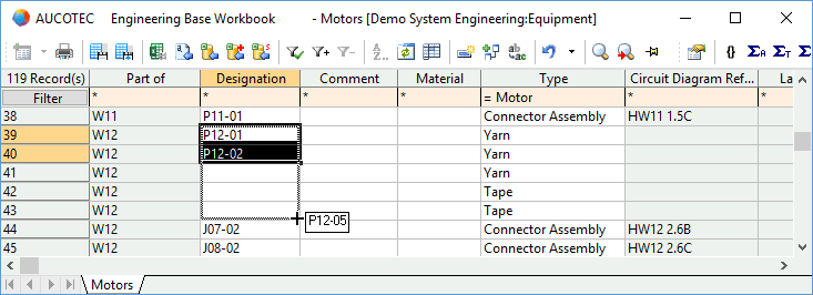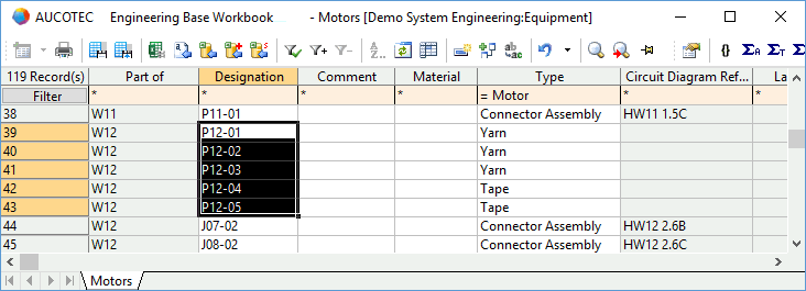 If you want to copy a material to other objects by dragging down the selected material cell in the Material column, you can define how the data is to be copied by making settings under Database Properties/Worksheets.