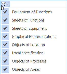 - Click the arrow of the left filter symbol above the navigation pane or the Engineering Base Explorer.