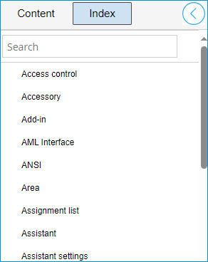 To ensure that the number of displayed help pages per keyword remains easy to view and manage, some keywords have a second level. You can recognize these nested keywords by an arrow to the left of the keyword.