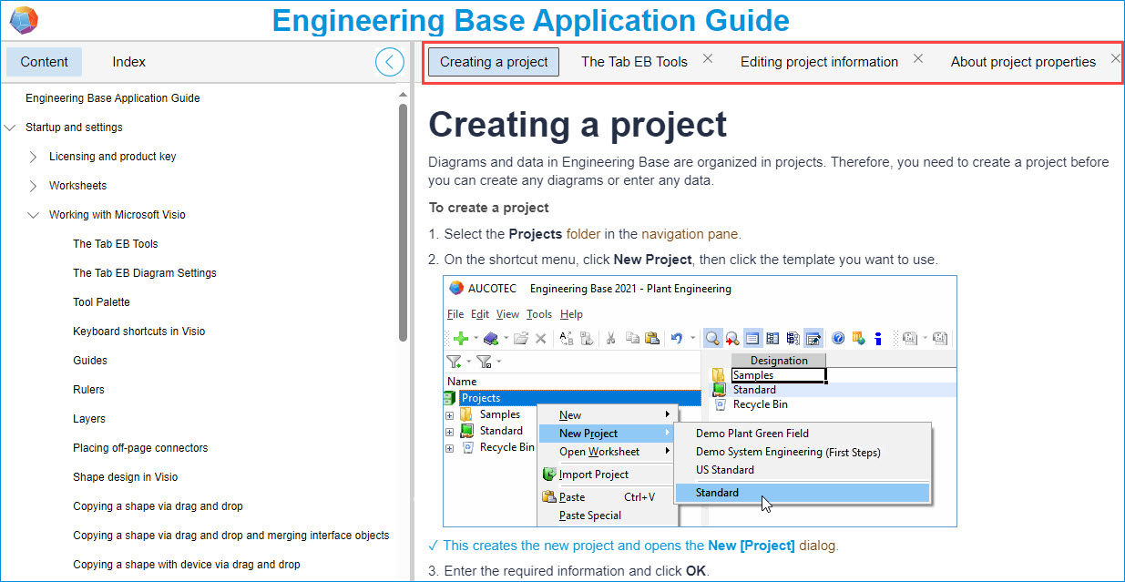 AUCOTEC provides you with a comprehensive help system that allows you to find the required information online in the shortest time. The following information supports you in using the Help in an optimal way.