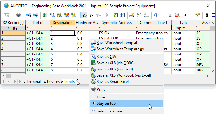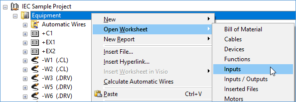 The standard worksheets do not show sub-devices, sub-units or sub-functions. To show these objects, please use the extended worksheets.