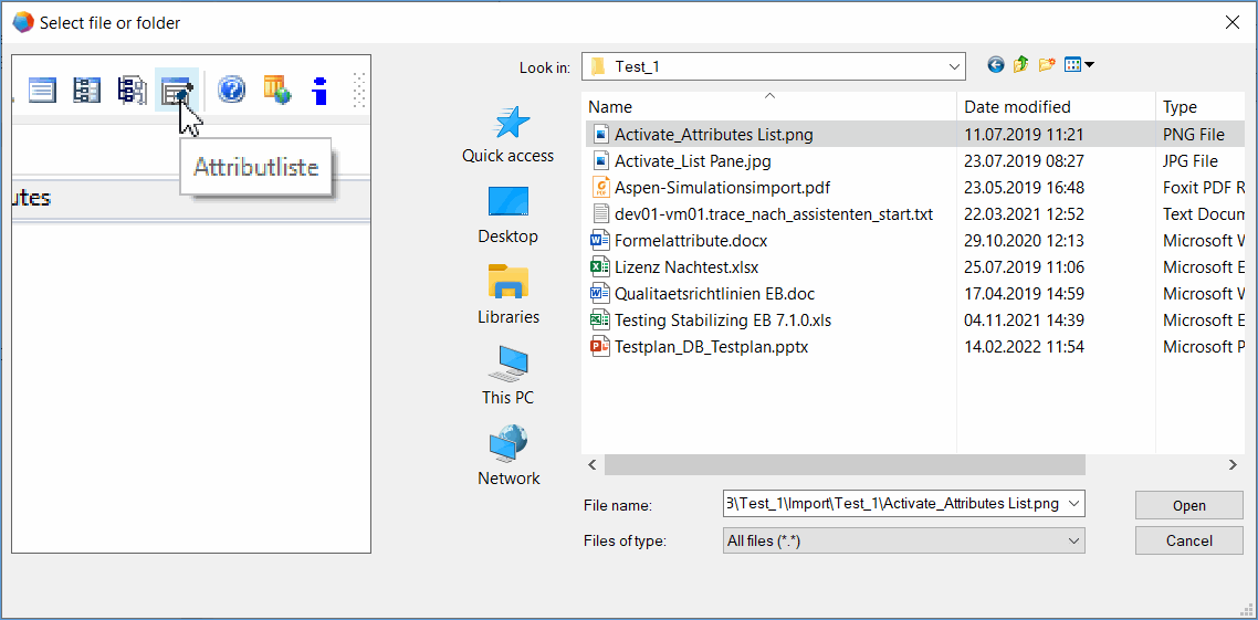 With Engineering Base, you can import files and directories using drag and drop. This includes multiple selections of files, directories, and directories with substructures. Alternatively, you can use the Insert File function on the shortcut menu to run the import.