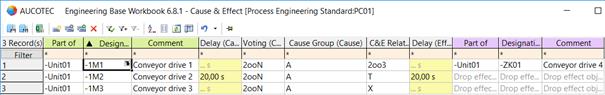 在项目设定中完成因果关系的C&E定义和表决后,您可以以图纸的形式为您的流程创建C&E表,这些工作表可以补充详细信息,例如触发警报之前的时间跨度。您可以将这些工作表输出为Excel文件,然后进行验证。如果在验证过程中出现任何不一致,数据将在Engineering Base的相应位置进行更改;例如,机柜中的接线。所有相关的编辑器都会看到一些变化;他们可以调整自己的C&E定义,并在按下按钮时轻松生成一个新的C&E表,其中包含更新的数据。