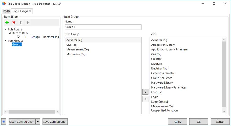 Under Item Groups, you can group function types into various item groups. For these item groups, you can then create rules in the rule library.